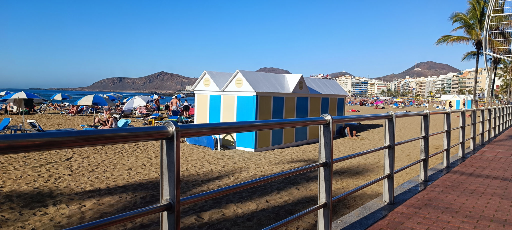 Playa de Las Canteras ist einer der schönsten Stadtstrände Europas: goldener Sand, kilometerlange Promenade, Surfschulen und Cafés direkt am Wasser.